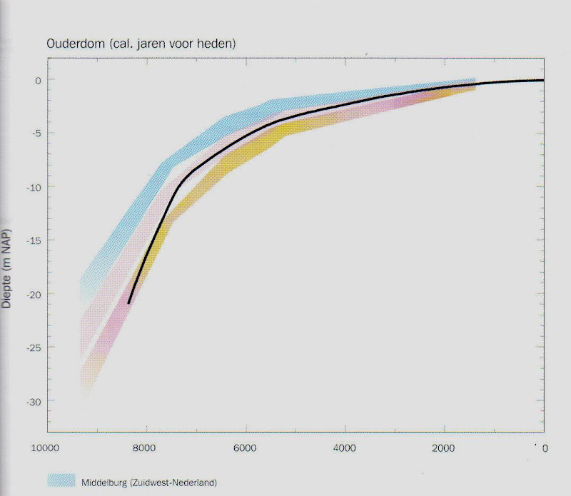 Fig. 3 Holocene zeespiegelcurves voor verschillende plaatsen langs de Nederlandse kust