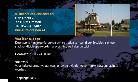 Het programma van de tien deelnemende musea is te vinden in de folder waarvan hier een detail met de deelname van het Streekmuseum in Ommen.