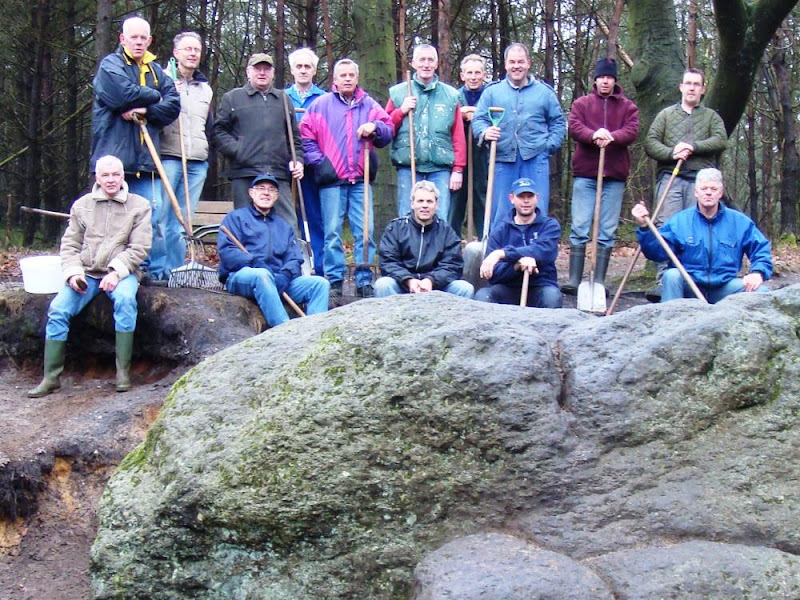 Leden van de historische vereniging Lemeles Arfgoed uit Lemele bij de dikke steen.