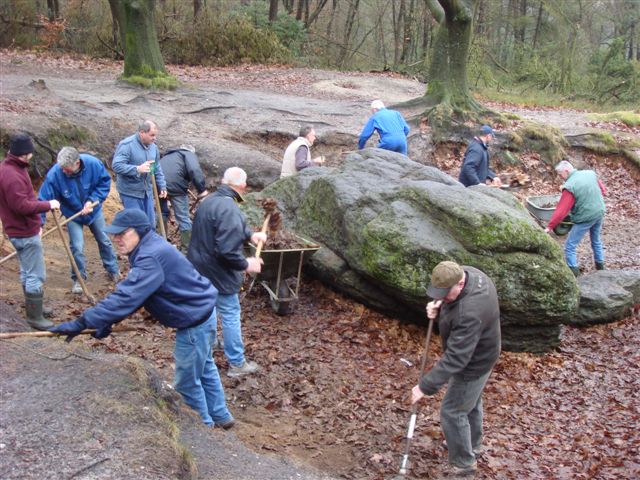 Elk jaar trekt een groep van leden van de historische vereniging Lemeles Arfgoed uit Lemele richting de dikke steen om ‘gewapend’ met schoppen, harken, kruiwagens en een dosis goede moed aan de slag te gaan voor de ‘steenwassing’. De dikke steen moet in volle glorie toonbaar zijn voor de wandelaars en iedereen moet er makkelijk om heen kunnen lopen. Hier ligt een stuk geschiedenis dat vele verhalen kent”, aldus Adrie Pouw, secretaris van Lemels Arfgoed, terwijl een man of twintig hard aan het werk is. Volgens Pouw is het idee van de steenwassing ontstaan in 2007 toen Lemels Arfgoed tien jaar bestond. “We hebben in overleg met het Overijssels Landschap Overijssel als eigenaar de steen geadopteerd. Binnen de vereniging is een werkgroep DOR actief, DOR staat voor dikke steen ontbloting en reinigingsploeg, met de bedoeling rondom de steen de omgeving toonbaar te maken. In 2005 hebben we de steen beter zichtbaar gemaakt met het weghalen van zand”.