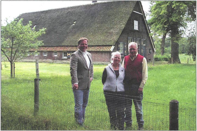 De familie Bruins en hun makelaar voor de monumentale boerderij, die binnenkort zal veranderen in twee nostalgische koopwoningen.