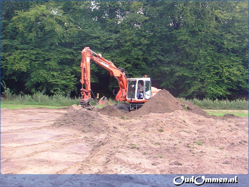 Tussentijdse impressie van de baan (l) en Verspreiden aangevoerde grond (r).