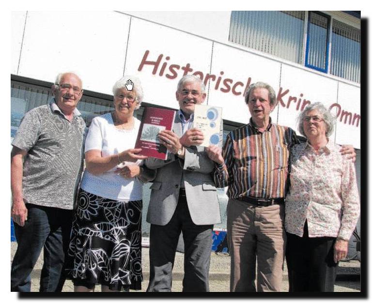 Zowel Adriaan Girootenhuis als Benny en Marietje de Kuilers-Willemsen stelden hun familiegeschiedenis te boek en boden HKO-voorzitter Berend Jan Warmelink een exemplaar aan.