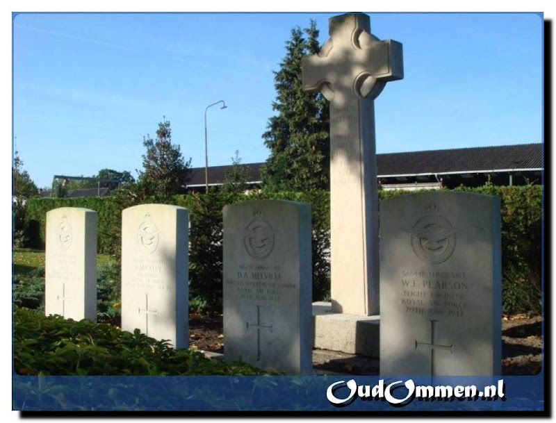 Oorlogsgraven op de begraafplaats aan de Hardenbergerweg van vier gesneuvelde Engelse vliegers. Na een bombardement op de Duitse stad Emden worden ze op de terugweg aangevallen door Duitse nachtjagers. Hun vliegtuig stort neer op 20 juni 1942 boven Arriërveld bij de boerderij van M.Kroese. Van de acht die in het vliegtuig zaten komen om Arthur Buckley, Douglas A.Melville, Peter Nixeyen Wilfred E.Paerson. Achter de graven een grafteken met de woorden: ‘There is a corner of a foreign field, that is for ever England’. Er is een hoek van een vreemd veld, dat voor altijd Engeland is.