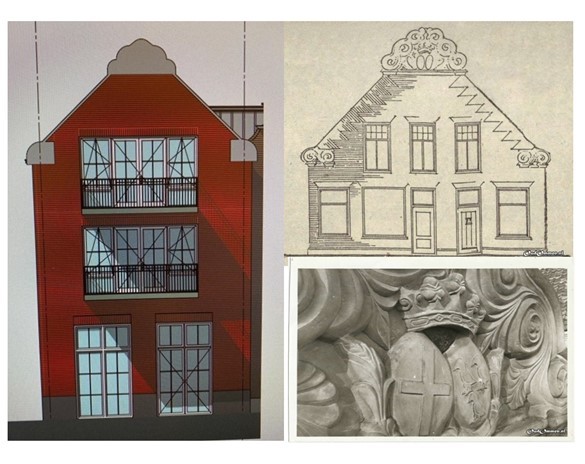 Op de voormalige Hema-locatie start binnenkort bouwbedrijf Ter Steege met de bouw van 15 appartementen en 7 stadswoningen. Op één van de woningen die aan de Brugstraat is gesitueerd is plek voor het zandstenen familiewapen Friesendorp-Walraven.