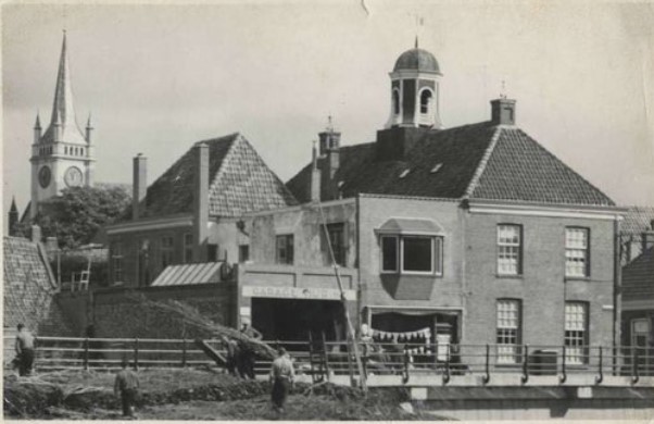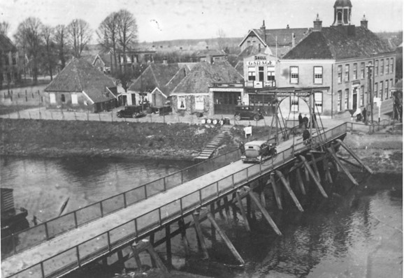 1936. De Vechtbrug met de Vechtstraat. De garage van Hurink zit pal naast het gemeentehuis