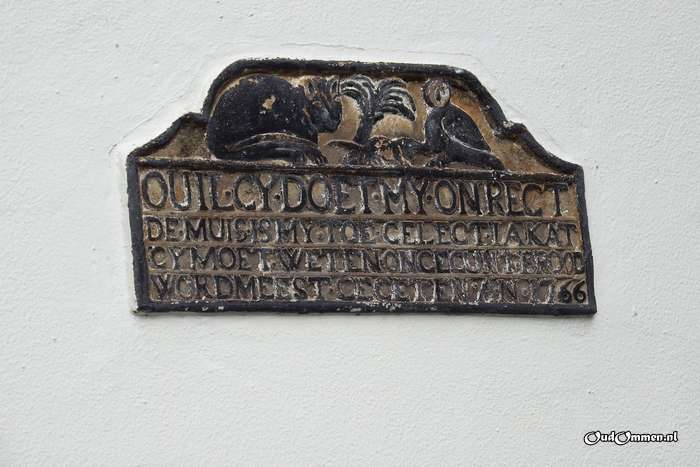 De gevelsteen met de Kat en de Uil van het pand Brugstraat 22. De steen is bij de verbouwing verwijderd en bevindt zich nu in de muur van het klokkenhuis.