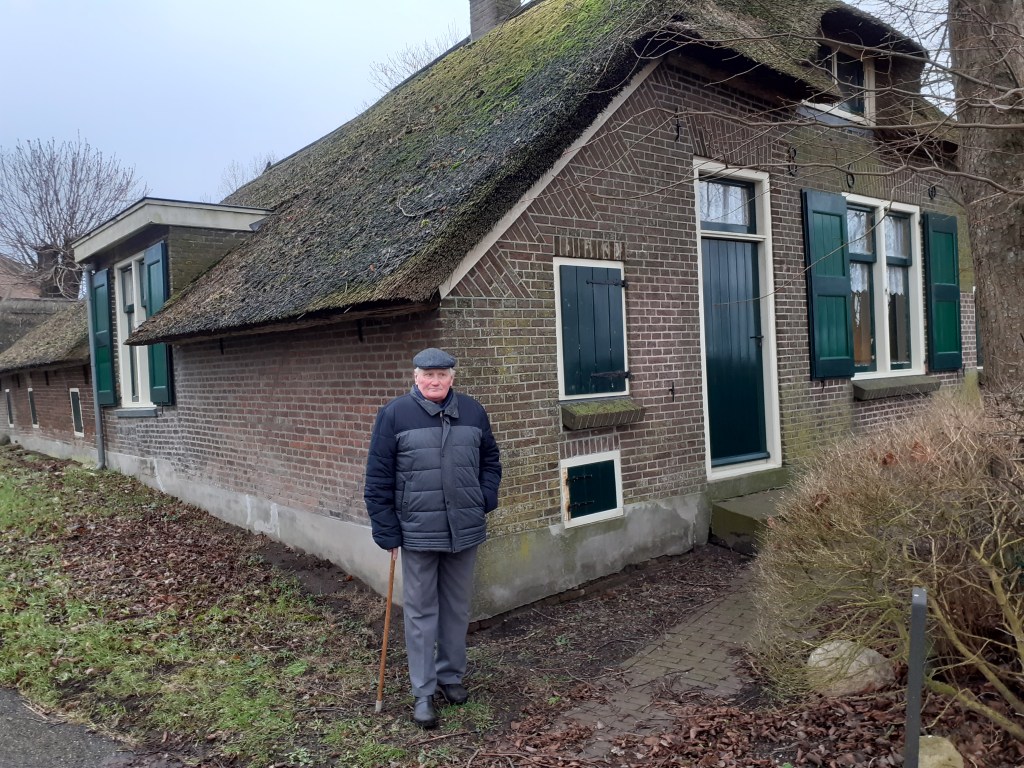 de heer Ten Klooster voor een van de boerderijen in Zwartewatersklooster.