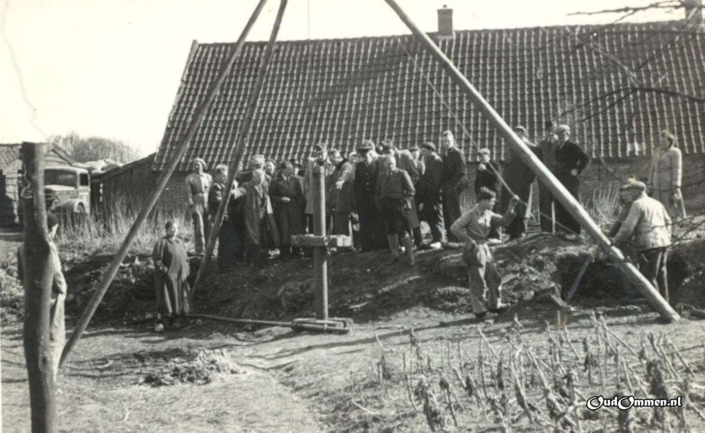 Met deze gegevens. opgezocht door een ijverig vorser naar de geschiedenis van Ommen, de gemeente-ontvanger G. Steen, hebben de minnaars van de historie van het Vechtstadje de hoofden weer bij elkaar gestoken. “Weet je wat”, zei toen de heer Hurink, een van de “promotors” van het zevende eeuwfeest dat Ommen in 1948 heeft gevierd, „we laten een wichelroedeloper komen. Die kan ons wel iets meer vertellen”. En de wichelroedeloper van Gorssel kwam, zag en wees met grote beslistheid de plaats bij de molen van Oldeman.