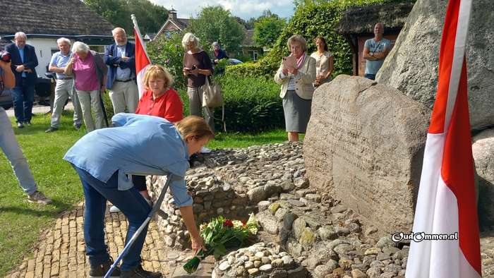 Moment van de bloemlegging bij het herinneringsmonument om de Slag bij Ane