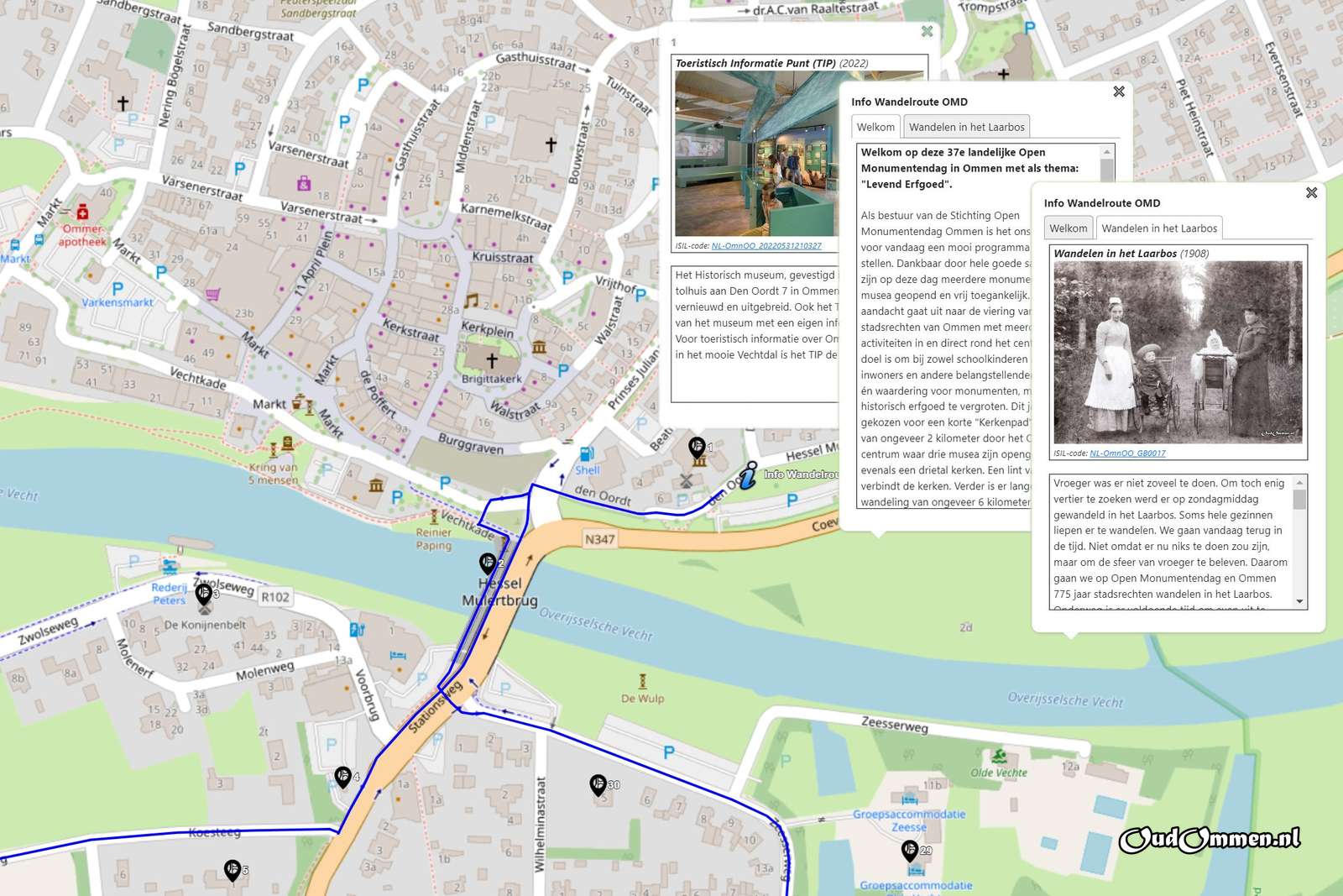 is de hele route te volgen. Hiervoor is het routeboekje van de organiseerde stichting Open Monumentendag Ommen gebruikt.