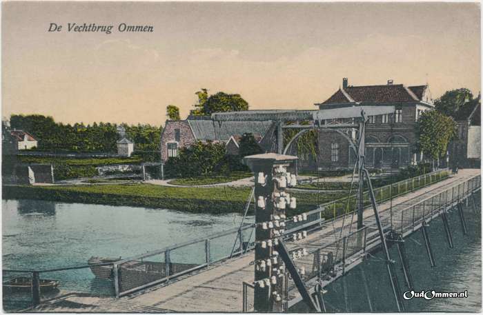 1924. De Vechtbrug Ommen. Op de achtergrond Hotel De Zon.