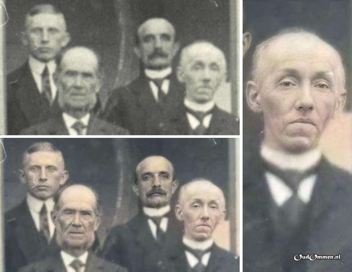 Om persoonsherkenning op historische foto’s een handje te helpen wordt doormiddel van AI de resolutie verhoogd in combinatie met het herstellen/verscherpen van de gezichten en het daarna in te kleuren. Een uitgekiend proces dat het mogelijk maakt om veel verder in te zoomen op de foto waardoor meer (gezichts-)details zichtbaar worden. Dit proces is specifiek bedoeld is voor persoonsherkenning, maar levert qua ‘beleving’ verrassende beelden op: “alsof een foto gisteren is gemaakt”.