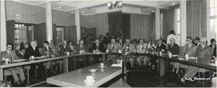 1974. De gemeenteraad van Ommen. V.l.n.r.: J.H. Hiemstra, G.J.Veurink, D.Hoogenboom, M.Grondman, A.Daman, G.J.Jaspers, A.v.d.Berg, D.H.W.Sturris, J.H.Moerman, A.J.Bult, E.Stoevelaar, A.Pouw, D.J.Liezen.