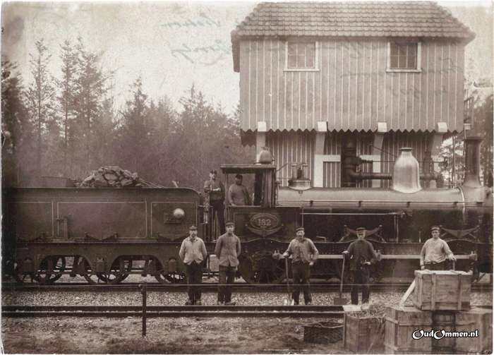 1903. Het station te Ommen bij de openstelling van de spoorlijn naar Zwolle. De trein werd getrokken door een stoomlocomotief.