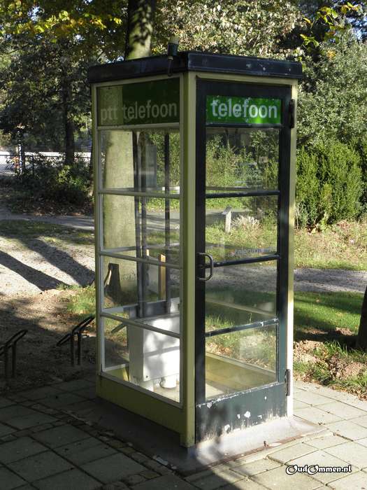 Op de camping een telefooncel anno 1980 (tegenwoordig een museumstuk) waarmee vroeger contact met het thuisfront werd onderhouden.