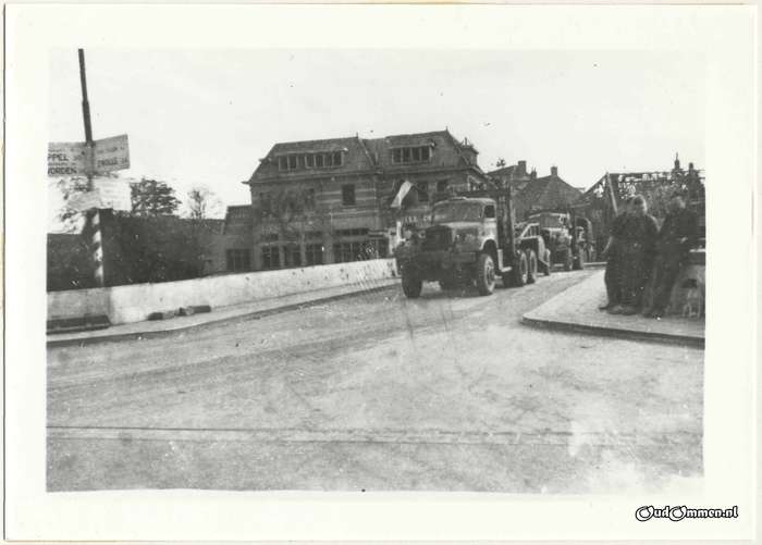 11 april 1945. Bevrijding van Ommen. Canadese soldaten passeren de Vechtbrug.