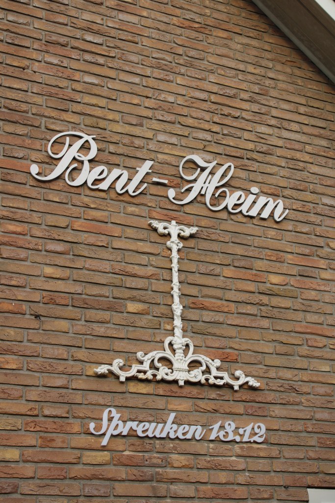 De muur van de woning van de familie Van der Bent maakt historie zichtbaar met “Bent – Heim”, een oude levensboom en een verwijzing naar Spreuken 13:12.