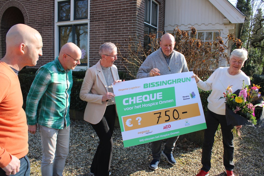 Eind vorig jaar werd de stichting Hospice Ommen officieel eigenaar van het monumentale pand aan de Zeesserweg 5. Sindsdien ontvangt het stichtingsbestuur regelmaat donaties, die het hospice goed kan gebruiken. Afgelopen zaterdagmiddag werd het bestuur verrast met een cheque van 750 euro aangeboden door de organisatoren van de Ommer Bissinghrun. “Als organisatie zijn we nog maar kort geleden gestart met de jaarlijkse Bissinghrun. Wij hebben besloten om elk jaar een bedrag te doneren aan een goed doel. Dit bracht ons op het idee om het hospice voor een periode van vijf jaar financieel te ondersteunen. De hoogte van het sponsorbedrag is afhankelijk van het aantal deelnemers”, vertelden Anne Marsman en Matthijs van Dokkum, namens de organisatie van de hardloopwedstrijd Bissinghrun. De eerstvolgende editie vindt plaats op 28 juni. “Oegema Logistics heeft zich voor vijf jaar als sponsor aan de Bissinghrun verbonden. Dit maakt het voor ons mogelijk om jaarlijks een donatie te doen aan een goed doel. Wij ondersteunen graag het lokale initiatief van het hospice”.