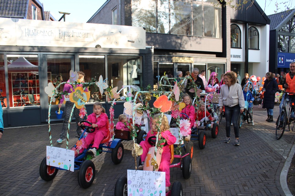 Een bonte stoet van versierde fietsen, karren en skelters was te zien op het door de Oranjevereniging georganiseerd evenement. De parade vond plaats traditioneel aan de vooravond van Koningsdag en werd voorafgegaan door de muzikanten van Soli Deo Gloria. De start van de parade was op het Kerkplein en liep via een 2,5 kilometer lange route die eindigde op het Vechtpodium op de Markt.