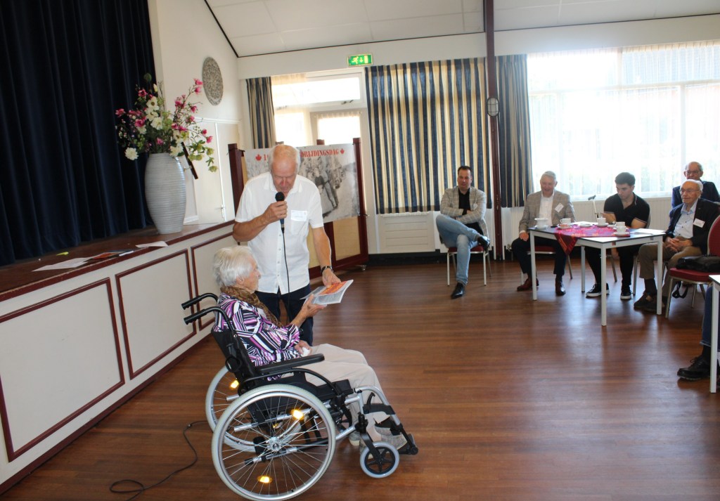Eerste exemplaar van het nieuwe boek ‘Bevrijding rond de Lemelerberg’ voor de 99-jarige Hanna Dijk-Wunnink.