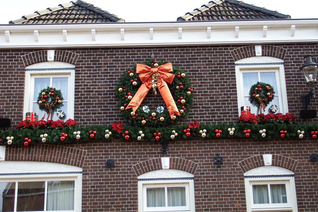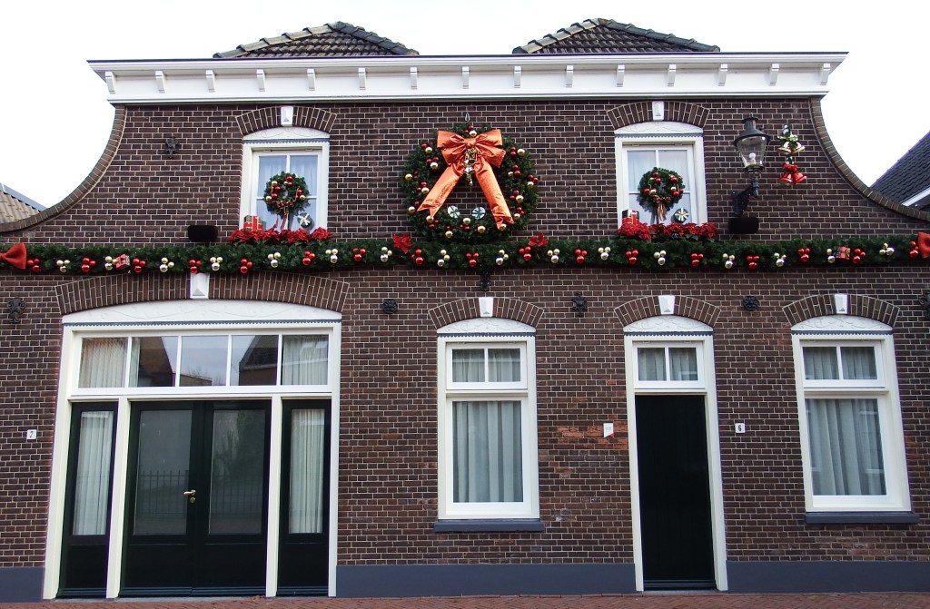 Bouwstraat 6 en 7. Een prachtig gerestaureerd pand, nu getooid in sfeervolle kerstsfeer – een sieraad van Ommen.