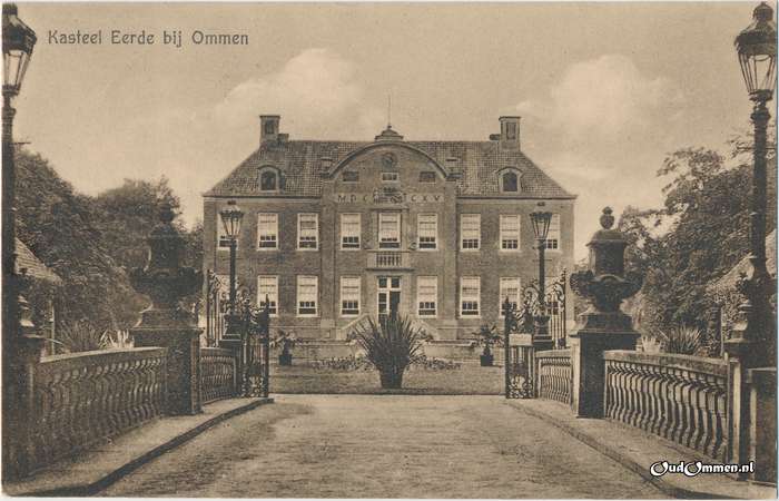 Zoals kasteel Eerde zich nu aan onzen blik vertoont, geeft het een prachtig voorbeeld van de ideale woning van de Hollandsen grand seigneur, voornaam en toch eenvoudig. Het is geheel in baksteen opgetrokken en van een uiterst rustige regelmatigheid – langwerpig vierkant. De voorgevel heeft een even vooruitspringende middenfaçade, begrensd door pilasters en bekroond door een ronden boog of timpaan, waarin het uurwerk is aangebracht. Deze middenfaçade met haar rustige verdeling van hoofdingang (glazen deur), vensters en bordes, met haar juist afgewogen uiterst fijne versiering van balkon, gierlanden en familiewapens, zij geeft aan de gehele voorgevel met zijn oude, verweerde kleur, een buitengewone bekoring, gezien vanaf de bogenbrug over de binnengracht.