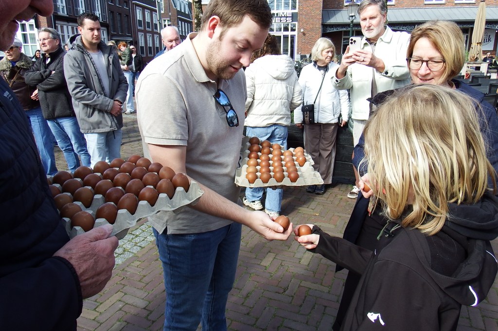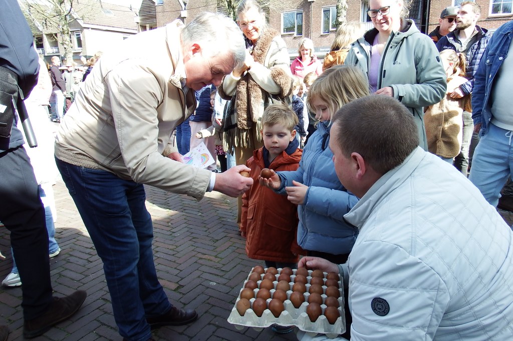 Op het zonovergoten Marktplein en Vechtpodium had zich veel publiek verzameld. Als vanouds zorgde de familie Martens weer voor een groot aantal speciaal hardgekookte eieren om deze te verkopen aan de deelnemers van het eiertikken.