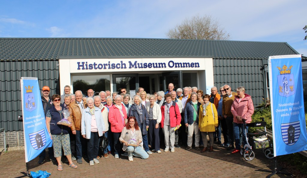 De complimenten van het Duitse gezelschap uit partnergemeente Recke over Ommen waren niet van de lucht na hun bezoek donderdag. Na aankomst en koffie in het Historisch Museum Ommen ging het gezelschap in de eigen bus met gids voor een rondritje door de omgeving van Ommen. Vilsteren werd aangedaan, vervolgens Dalmsholte, Lemelerberg, Lemele en Besthmen. Ook ging de bus langs de brink van Arriën. Dit alles onder zonnige omstandigheden en waar de Duitse gasten zagen dat de lente in de natuur al begonnen is. Na de bustocht keerde de groep weer terug in het museum voor de lunch. Daarna werd het museum bezocht en stond een gegidste stadswandeling op het programma.