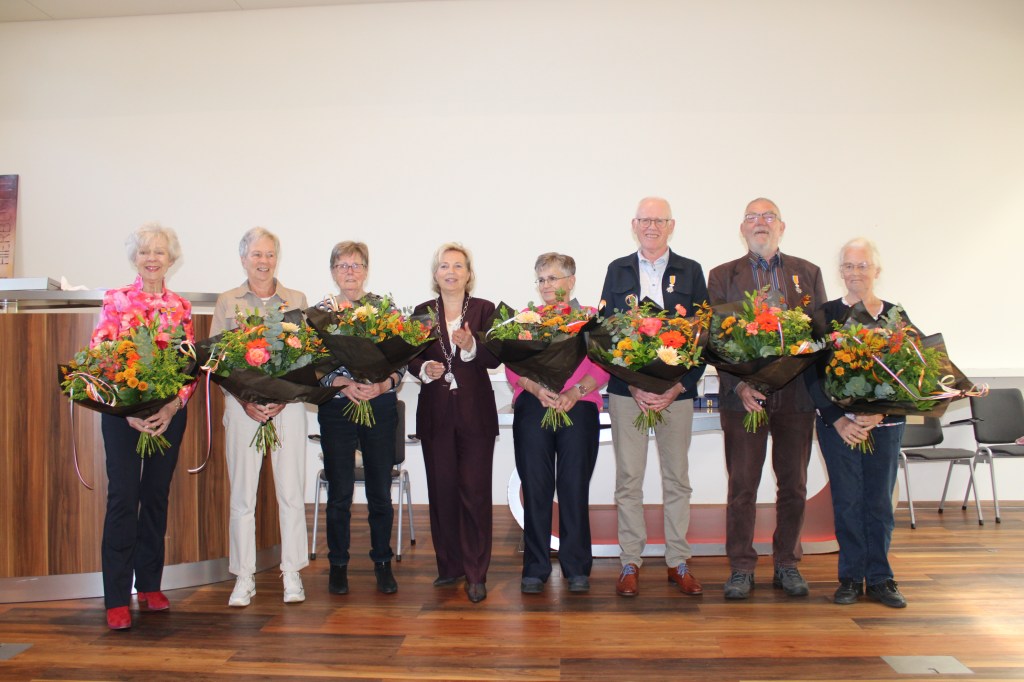Het waren achtereenvolgens Leida Bruins-Lemmers, Klazien Wienen-van den Brink, Betty Hirink-Makkinga, Mario den Hoedt, Teunie Limbeck-Kooij, en Willy & Bert Schuttert die vrijdagmorgen een lintje kregen opgespeld door waarnemend burgemeester Annemiek Jetten.