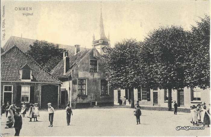 1905. Het Vrijthof met op de achtergrond de hervormde kerk. Het plein diende tevens als speelplaats van de openbare school aan de oostkant van het plein.