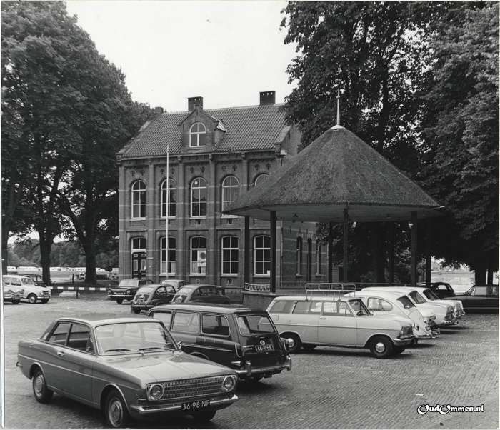 1970. Het oude kantongerecht/belastingkantoor aan de Markt met rechts de ronde muziektent.