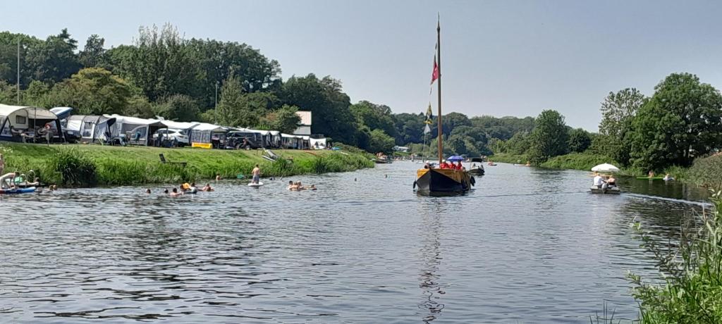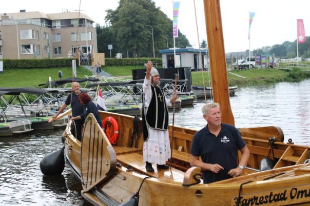 2023. Aankomst van de ‘bisschop’ met de Vechtzomp ‘Hanzestad Ommen’ tijdens de viering Ommen 775 jaar stadsrechten.