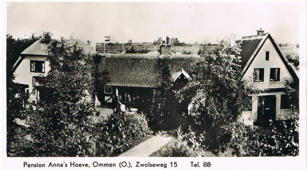 “Ommen 12-4-61. Lieve Mien en To. We zitten hier met prachtig weer in een alleraardigst pension. De krentenbomen bloeien verrukkelijk. Ik heb al veel gewandeld. De groeten van Lien Kramer To, ze was blij met je brief. Willen jullie deze ansichtkaart voor me bewaren. Veel liefs Tine.“