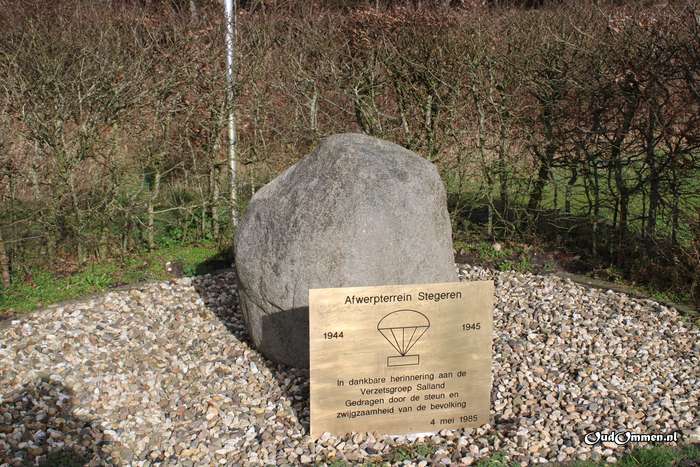 De verzetsgroep Salland moest na een eerste dropping aan de Loomsweg in de buurtschap Hoge Hexel onder de gemeente Wierden op 13 september 1944, door verraad noodgedwongen haar werkterrein verplaatsen. Na enig zoeken vond men een nieuw terrein in Stegeren in de gemeente Ommen op het landgoed van baron Bentinck van Schoonheten. De eerste weken werd onderdak gevonden in de boerderij van landbouwer Weitkamp. Daarna dook men van augustus 1944 tot het einde van dat jaar onder in een hut in de Stegerense bossen. Toen de Duitsers er lucht van begonnen te krijgen, werd een hol bij het afwerpterrein gegraven, waarin alle mannen een onderdak vonden. Hierin werden ook de gedropte wapens –brenguns, stenguns geweren en pistolen – gereed gemaakt voor verzending. Het verzorgingsgebied bestond uit Dedemsvaart, Dalfsen, Deventer, Holten, Kampen, Lemele, Ommen, Vriezenveen, Lemelerveld, en de Achterhoek. Soms werden de wapenzendingen afgehaald of bracht de groep ze zelf weg met een paard en wagen, per schip of op de fiets. Er waren dertien geslaagde droppings van totaal 48 ton wapens, munitie, levensmiddelen en kleding. Per dropping werden circa 20 containers afgeworpen. Ook zweefden acht geheime agenten aan parachutes naar beneden, waarna deze elders op veilige plaatsen werden ondergebracht. Stegeren werd door de verzetsgroep gezien als één van de veiligste afwerpterreinen in Nederland. Bovendien werden vanuit Stegeren de nodige sabotage-activiteiten verricht. Overigens vond in Stegeren op 7 november 1941 ook al een dropping plaats met het zogeheten Englandspiel toen de geheime agenten Huub Lauwers en Thijs Taconis werden gedropt. Hun fiets met parachute werd een dag later gevonden.