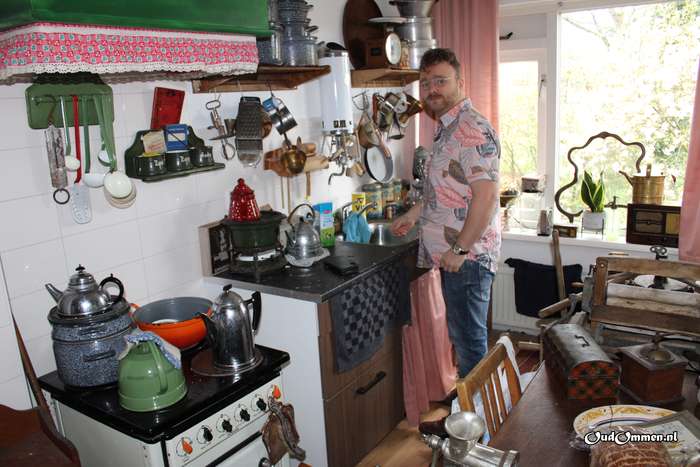 Tom Bouwhuis in de keuken van zijn museum met alles wat vroeger zo gewoon was. Zie voor meer foto’s het album “Tom Bouwhuis museum aan huis“.