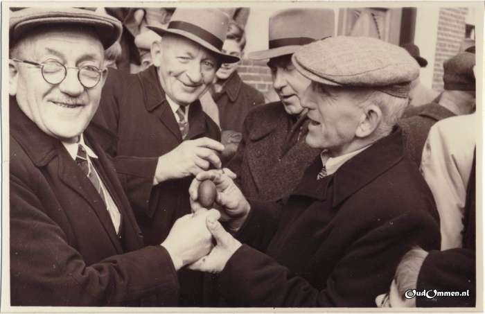 1962. Eiertikken op Tweede Paasdag. V.l.n.r. : A.J. van Aalderen, G.J. Makkinga, Joh. Stegeman en H. Martens.
