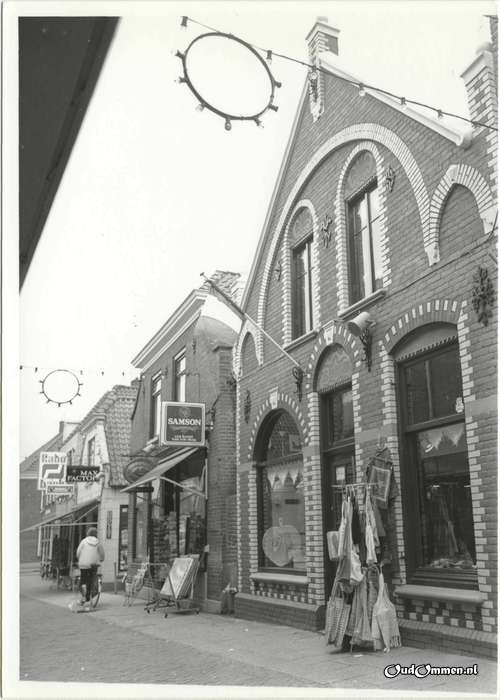 1960. Brugstraat 33, toen nog de familie Luttekes: smederij, haarden en kachels, fietsen en galanterieën. Sinds 1964 Makkinga-Kikkert stoffen en naaimachines; en vanaf 1974 Van Dam.