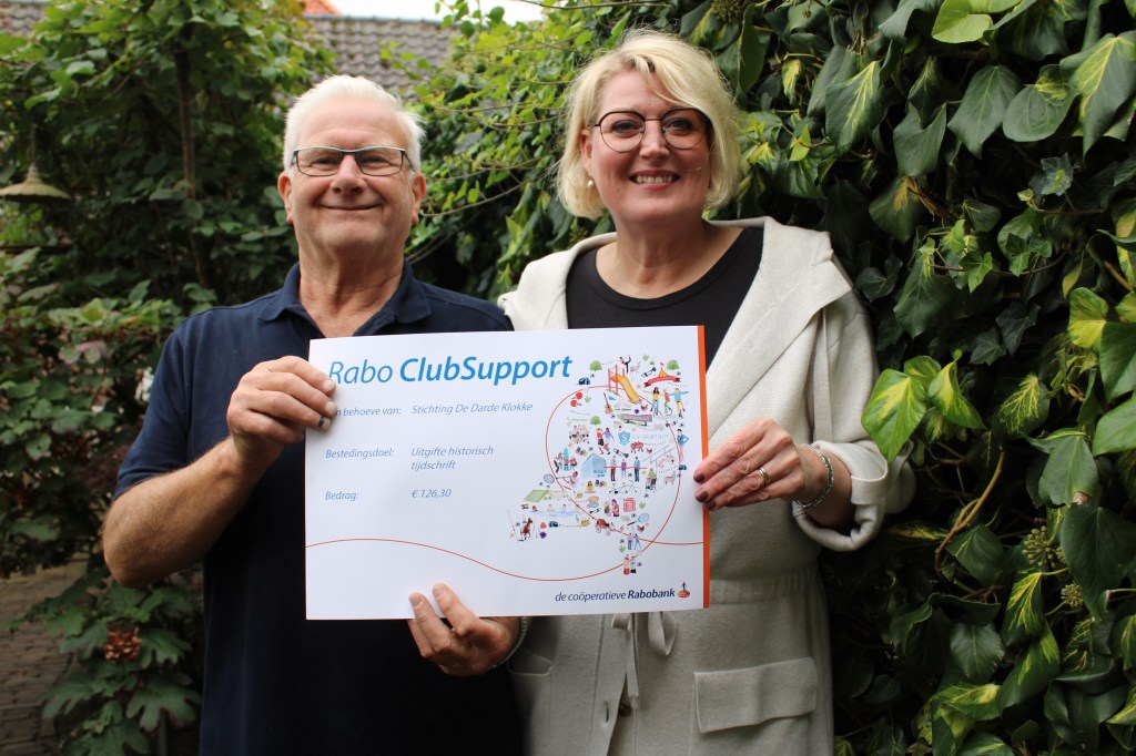 Het bestuur van de stichting De Darde Klokke heeft vandaag een cheque van € 126,30 ontvangen van de Rabobank als deelnemer aan de jaarlijkse Rabo ClubSupport.