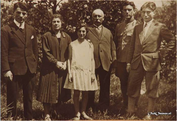 De Joodse familie de Haas.; De enige Ommer Joden die de oorlog hebben overleefd. Van links naar rechts: Karel, Mina, Martha, Salomon, Alex en Leo.
