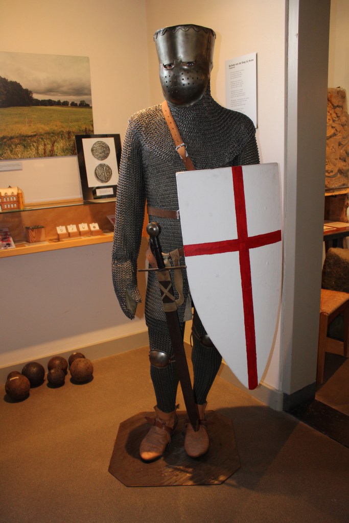 Een ridder in harnas te bewonderen in een expositie rondom de Slag bij Ane in het Streekmuseum in Gramsbergen.