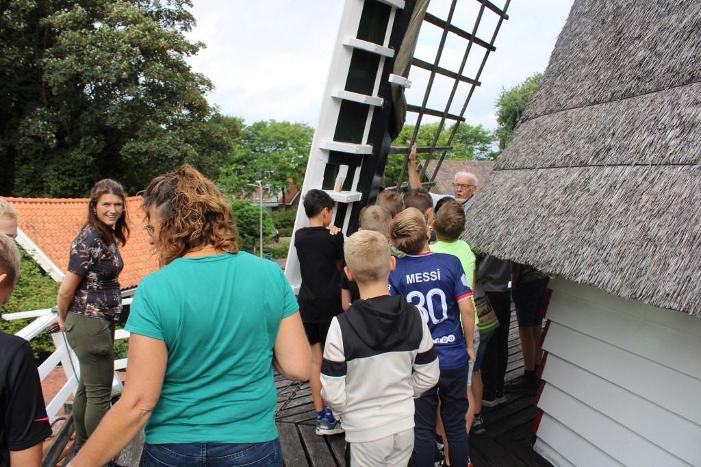 De Open Monumenten Klassendag is een landelijk initiatief, waarmee de Stichting Open Monumentendag Ommen scholieren wil laten kennismaken met monumenten en de verhalen die zij vertellen. Elk jaar wordt hiervoor dan ook een school uitgenodigd. Dit keer De Schakel. De kinderen luisterden aandachtig naar museummedewerker Reinder Lanjouw, die ook met ze de molen in ging. Na afloop werden de leerlingen getrakteerd op een ijsje.