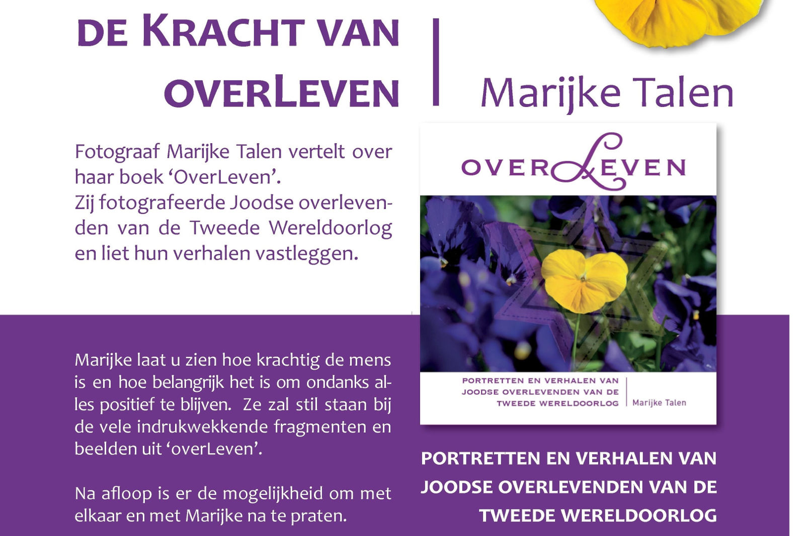 Vanaf 20.00 uur vertelt fotograaf Marijke Talen uit Vroomshoop over haar boek “Overleven”. Zij fotografeerde Joodse overlevenden van de Tweede Wereldoorlog en liet hun verhalen vastleggen. Marijke laat zien hoe krachtig de mens is en hoe belangrijk het is om ondanks alles positief te blijven. Ze zal stil staan bij de vele indrukwekkende fragmenten en beelden uit “Overleven”.